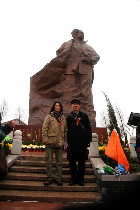 雕像作者東郭和著名的美術(shù)理論家、美術(shù)教育家、畫家左莊偉教授在胡耀邦雕像前留影