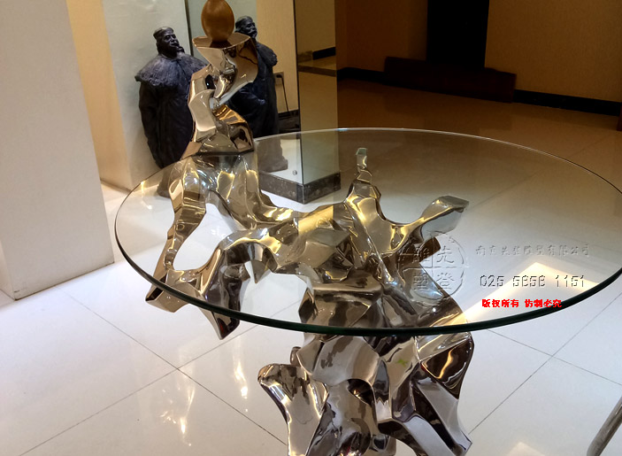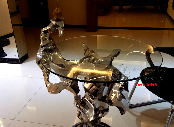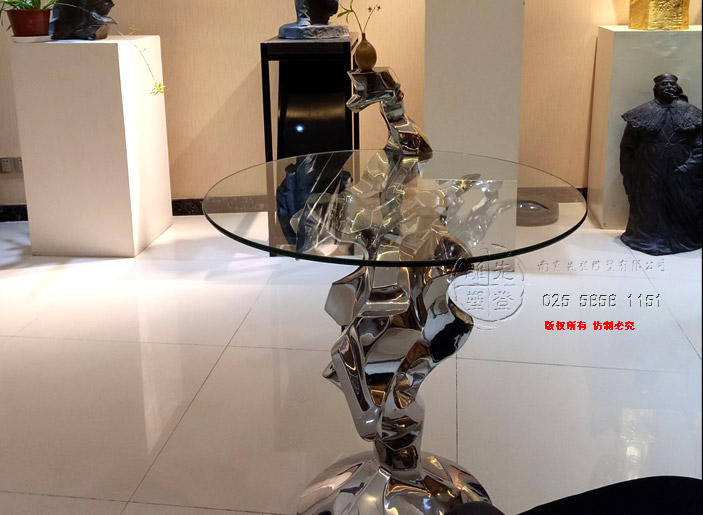第5空間實(shí)驗(yàn)性研究新作《對話 · 石溪》,該作品名中石溪具有多重意義,一是指表象清泉石上流之表意(玻璃代表水,在人造金屬石上流動),另一含義是指和先賢著名畫家石溪的心靈對話也,再則,石溪乃是一種情境,有曲水流觴之意境也,對話是指人與自然、人與語境、人與人的對話,桌子便是在一起對話與交流的平臺